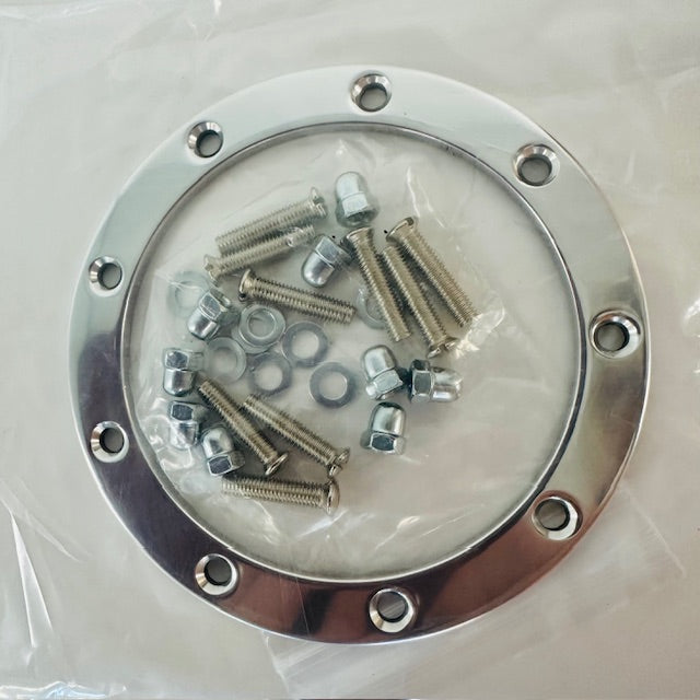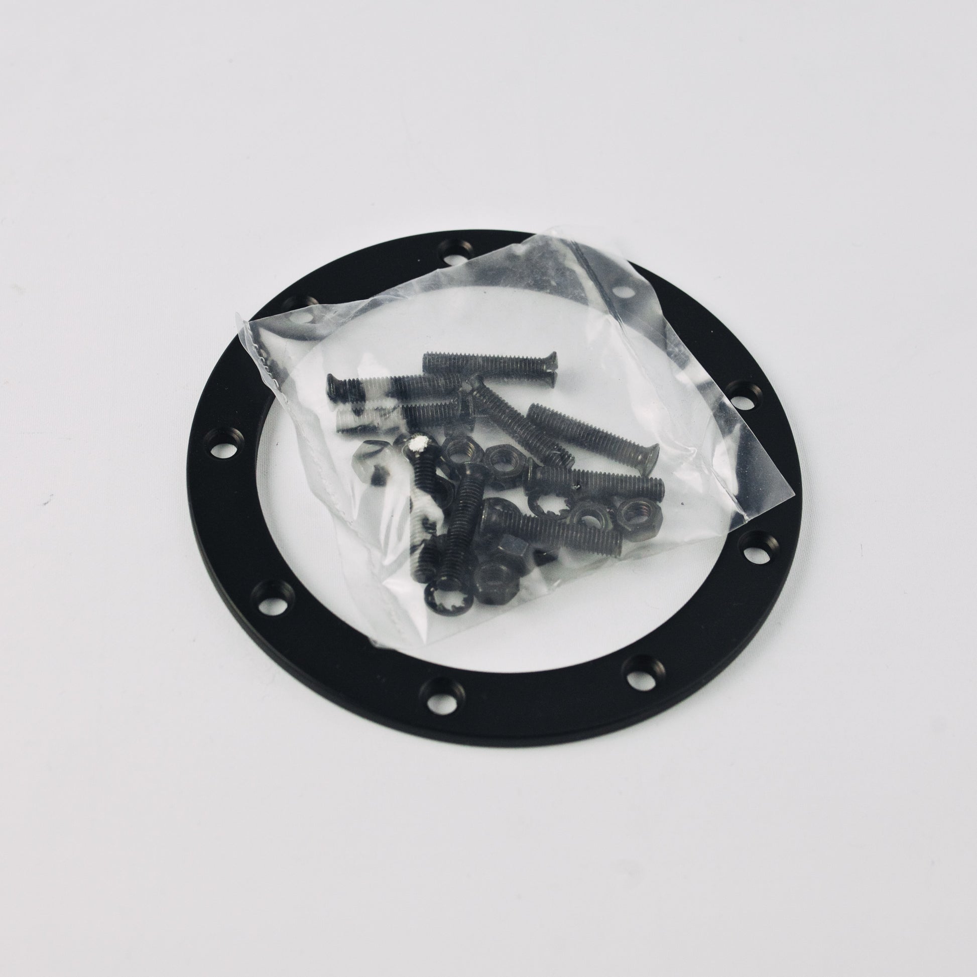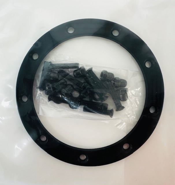 This comprises of a top ring (101.6 mm PCD) and 9 - M5 x 25 slot head screws with washers and dome nuts as shown.